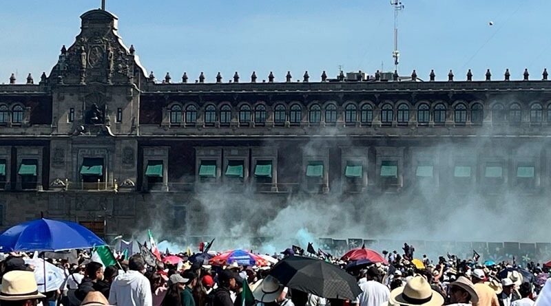 El acceso al Zócalo, punto final de la marcha, se encuentra blindado con vallas metálicas y barreras de concreto instaladas en varios puntos del primer cuadro. La bandera de México no se encuentra en el asta.