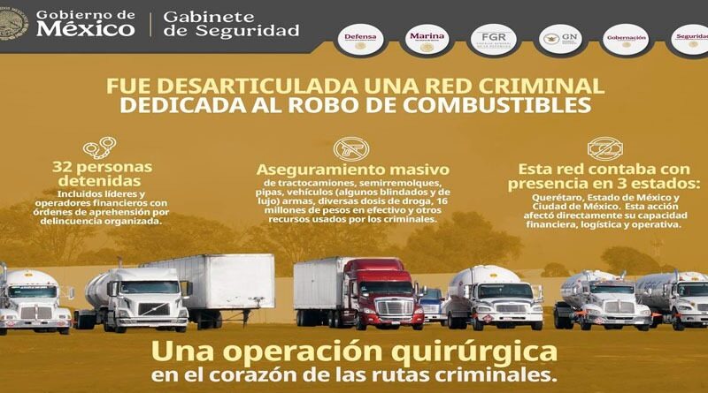 Ciudad de México 30 junio 2025.- Una importante red de huachicol del clan de «Don Checo», una de las principales en el País, que operaba en Querétaro, Hidalgo, Estado de México y Ciudad de México fue desmantelada este fin de semana y se reportaron 32 detenidos.