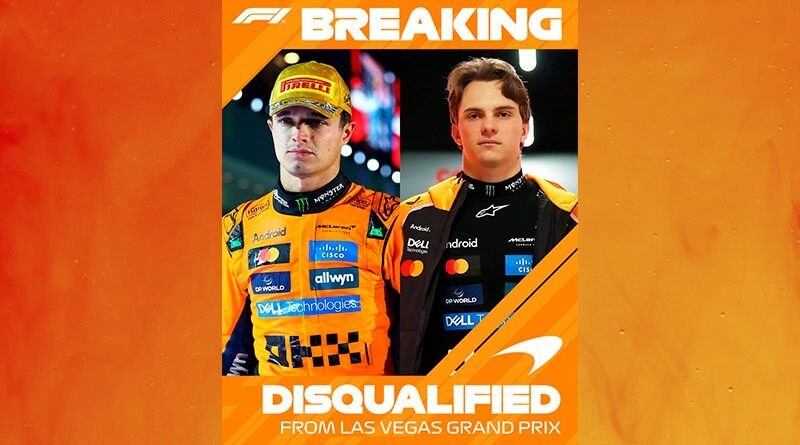 Las Vegas, Estados Unidos 23 noviembre 2025.- Los dos autos McLaren de Lando Norris y Oscar Piastri fueron descalificados del Gran Premio de Las Vegas, impactando de lleno la pelea por el campeonato de pilotos.