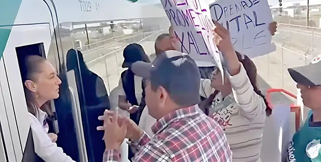 “Nosotros apoyamos a Andrés Manuel López Obrador”, le reclamaron. “No nos han atendido, no nos han cumplido con todo lo prometido”, le dijeron. “Sí, sí”, les respondió la Presidenta asomada por una ventanilla de la cabina.