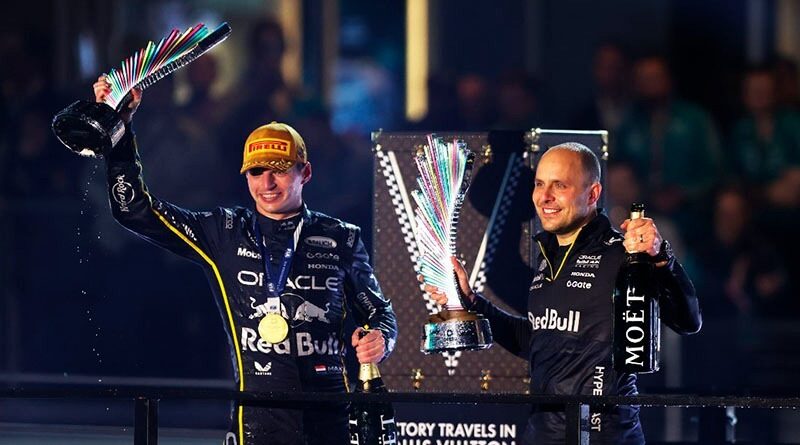 Ciudad de México 22 noviembre 2025.- El piloto de Red Bull, Max Verstappen, dominó de principio a fin el Gran Premio de Las Vegas.