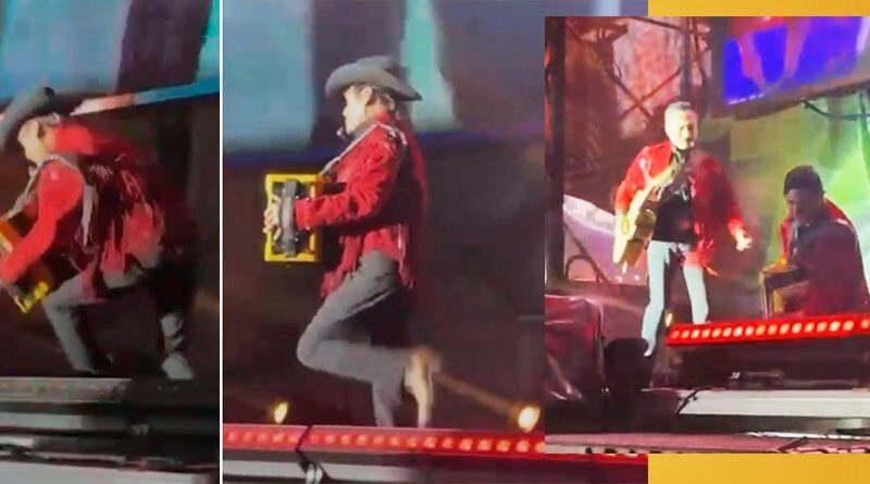 San Luis Potosí, SLP, 19 agosto 2025.- La noche del domingo, durante su presentación estelar en el Teatro del Pueblo de la Feria Nacional Potosina (Fenapo), los Tigres del Norte ofrecieron un concierto que se convirtió en tema de conversación más allá de la música. Mientras interpretaban La Lotería, Jorge Hernández, voz principal y acordeonista del grupo, tropezó y cayó de costado en el escenario, lo que generó un momento de sorpresa entre los asistentes.