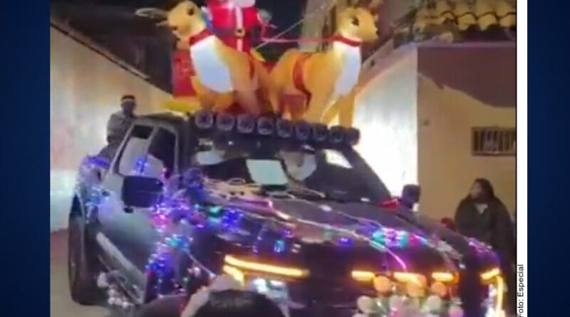 En un video de redes sociales se ve la caravana de al menos tres camionetas con luces navideñas que transporta a hombres con armas largas vestidos de Santa Claus.