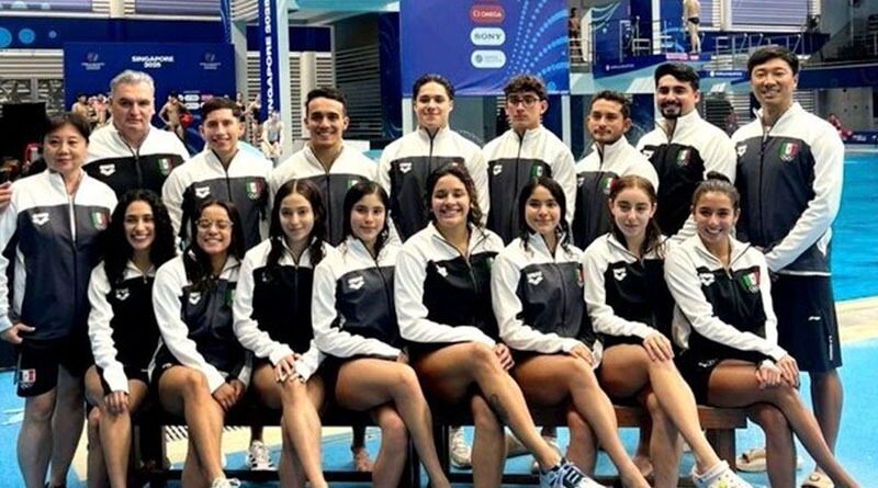 Ciudad de México 26 julio 2025.- México consiguió la medalla de plata en equipo mixto de clavados durante el Mundial de Deportes Acuáticos que se celebra en Singapur.