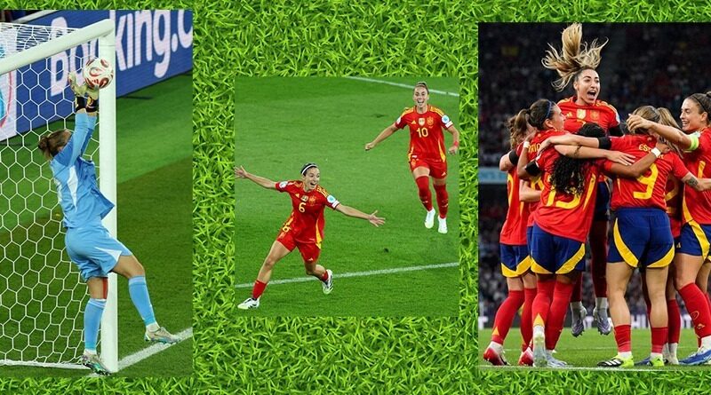 Ciudad de México 23 julio 2025.- De la mano a Aitana Bonmatí, la versión femenina de la furia roja derrota a Alemania en tiempos extras, con una fabulosa jugada individual, al amagar una recepción dentro del área, deja pasar el esférico en un magnífico engaño deja atrás a su marca y va a la línea de fondo perfilada para centrar, pero saca un tiro raso pegado al poste para engañando a la arquera teutona y hacer el gol que las lleva a disputar la final contra Inglaterra.