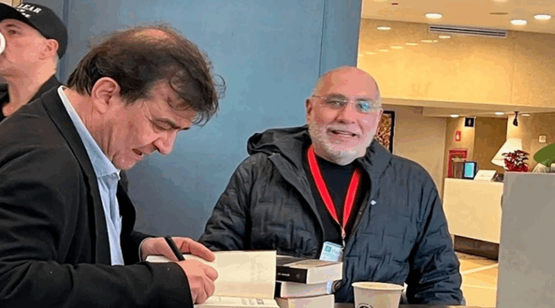 Guadalajara, Jalisco 1 diciembre 2025.- El Salón 6 de la Feria Internacional del Libro de Guadalajara quedó rebasado. Lectores apretados en cada fila esperaban escuchar a Javier Cercas, el autor español que llegó a la feria con un libro que no debía existir: El Loco de Dios en el Fin del Mundo, que es el resultado de una invitación inédita: acompañar al Papa Francisco en su viaje a Mongolia en septiembre de 2023, un país de tradición budista con menos de mil quinientos católicos. Frente a él, la escritora mexicana Rosa Beltrán moderó la charla.