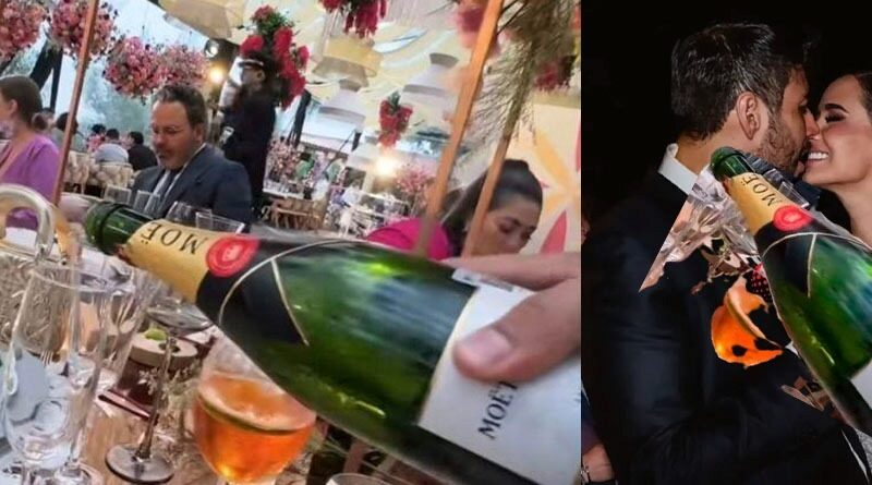 La fiesta se condujo en contra de los principios de la Cuarta Transformación, ya que en las imágenes se observa que fue una celebración de lujo; la novia utilizó un vestido blanco, largo, quien junto a sus invitados disfrutó de champagne Moet, la cual tiene un costo de al menos mil 500 pesos por botella y se repartió en todas las mesas.