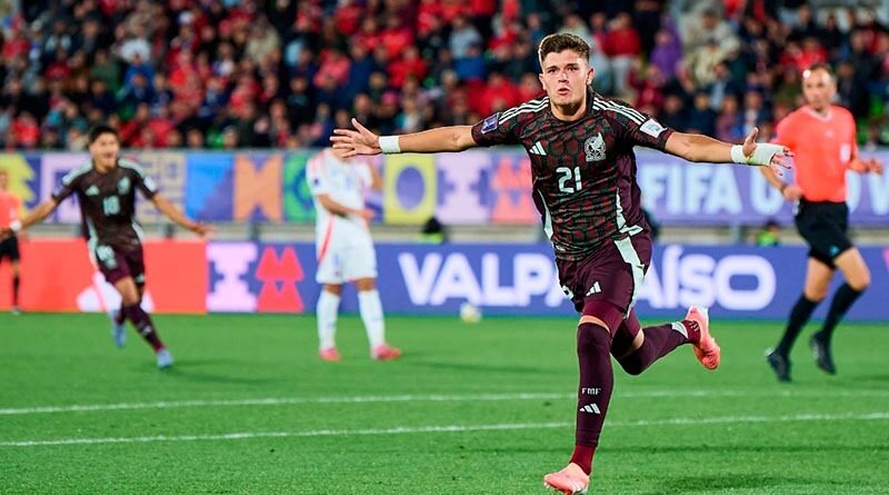 Valparaíso, Chile, 7 octubre 2025.- La Selección Mexicana Sub 20 se impuso contundentemente 4-1 al equipo chileno, asegurando su lugar entre los mejores ocho del torneo. Con goles de Tahiel Jiménez, Iker Fimbres y un doblete de Hugo Camberos, el equipo mexicano mostró un notable crecimiento en su rendimiento futbolístico.