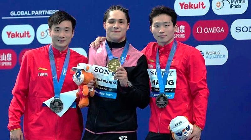 El clavadista Osmar Olvera Ibarra escribió su nombre con letras de oro en la historia del deporte mexicano, luego de coronarse en la final varonil de trampolín 3 metros, tras cosechar un total de 529.55 puntos y superar a sus rivales chinos, que se quedaron con la plata y el bronce, en el Campeonato Mundial de Deportes Acuáticos Singapur 2025.