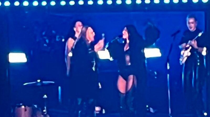 La aparición de Fher llegó cuando el show llevaba alrededor de una hora. Dua, fiel a su tradición de homenajear a la música local en cada país que visita, anunció su “momento favorito de la gira”… y boom: pidió un aplauso para el líder de Maná, quien salió desde el fondo del escenario vestido de negro, igual que ella.