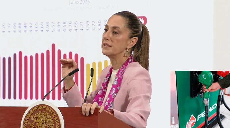 Ciudad de México 8 agosto 2025.- A pesar de la caída del precio internacional de la gasolina, que ha provocado que se venda más barata en Texas, desde donde se importan casi todos los combustibles de México, la Presidenta Claudia Sheinbaum renovó su «sugerencia» -a la cual ayer llamó «acuerdo voluntario»- de topar a 24 pesos por litro la Magna.