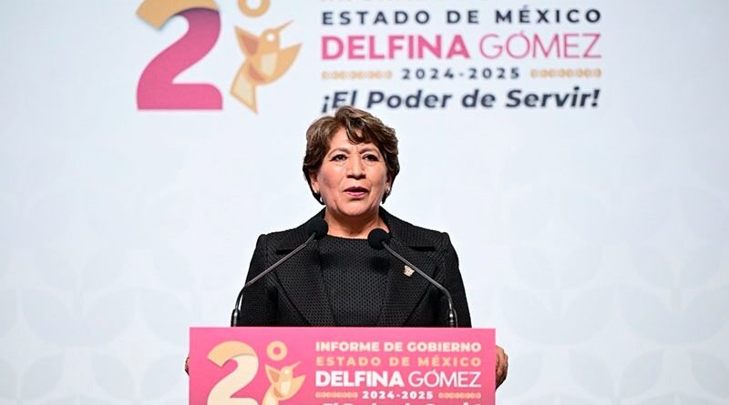 Toluca, Edomex 23 septiembre 2025.- En su Segundo Informe, Delfina Gómez, Gobernadora del Estado de México, resaltó la disminución de delitos de alto impacto.